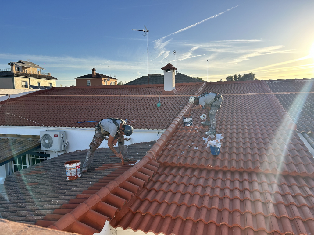 La impermeabilización de tejados puede ser un gran desafío, sobre todo en cubiertas con tejas antiguas, deterioradas o con filtraciones previas. Nuestro equipo, con experiencia y profesionalidad, llevó a cabo una preparación exhaustiva: limpieza de la superficie, reparación de pequeñas grietas y aplicación de los tratamientos impermeabilizantes adecuados. Cada fase del proceso se ejecutó con precisión para asegurar un sellado completo, evitando futuros problemas de humedad y garantizando una protección duradera.