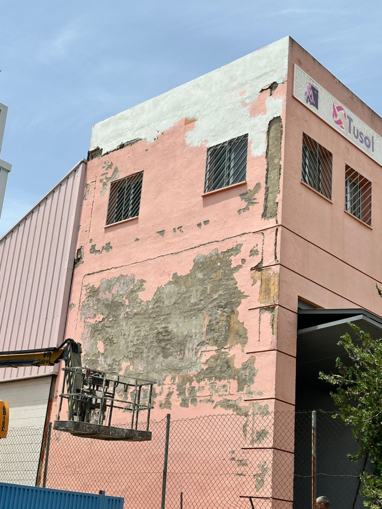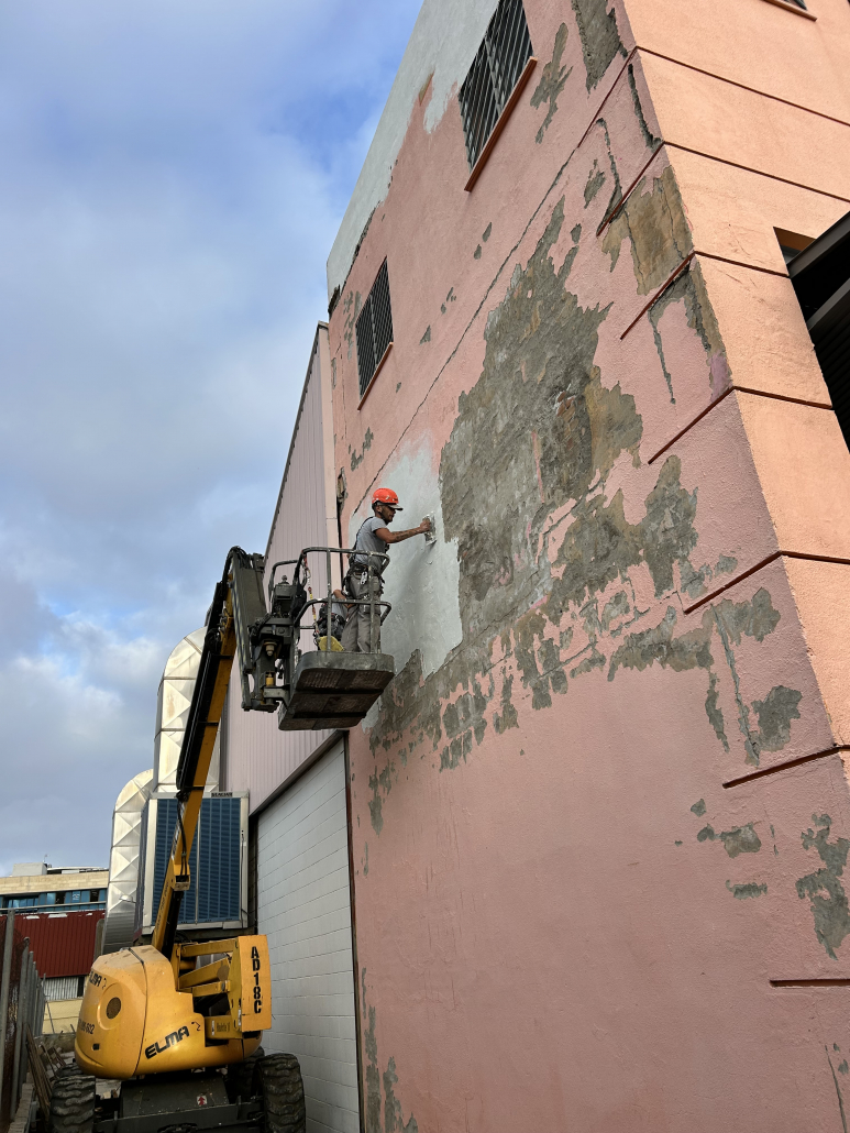 - Limpieza y preparación de fachadas, eliminando suciedad acumulada, polvo, restos de contaminación y zonas deterioradas por la exposición continua al exterior.